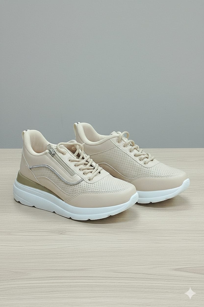 Kadın Krem Yüksek Taban Spor Ayakkabı