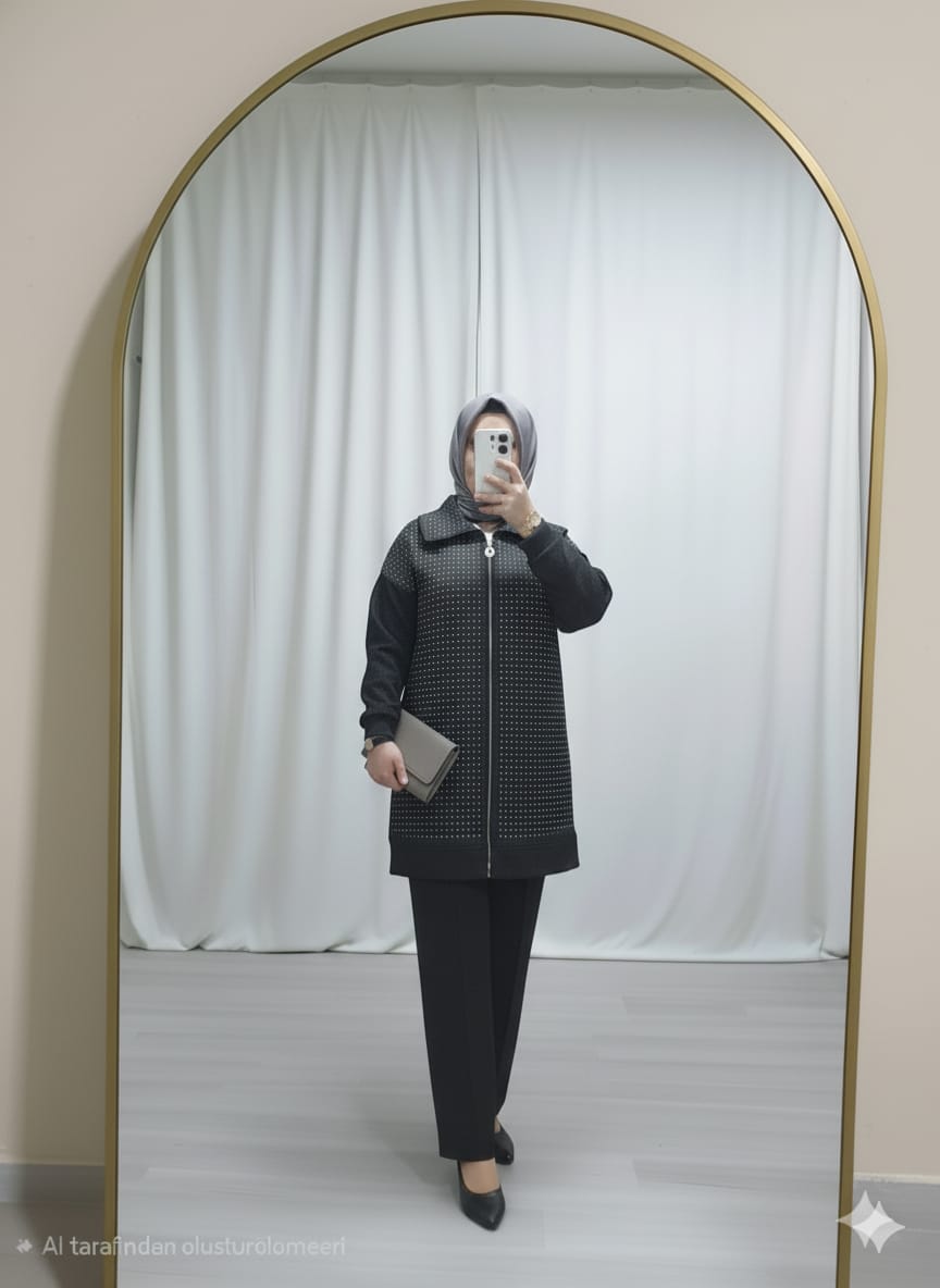 kadınlar için LÜKS ve ışıltıyı bir araya getiren bu takımda esnek ve rahat kumaşı ile karşınızda
