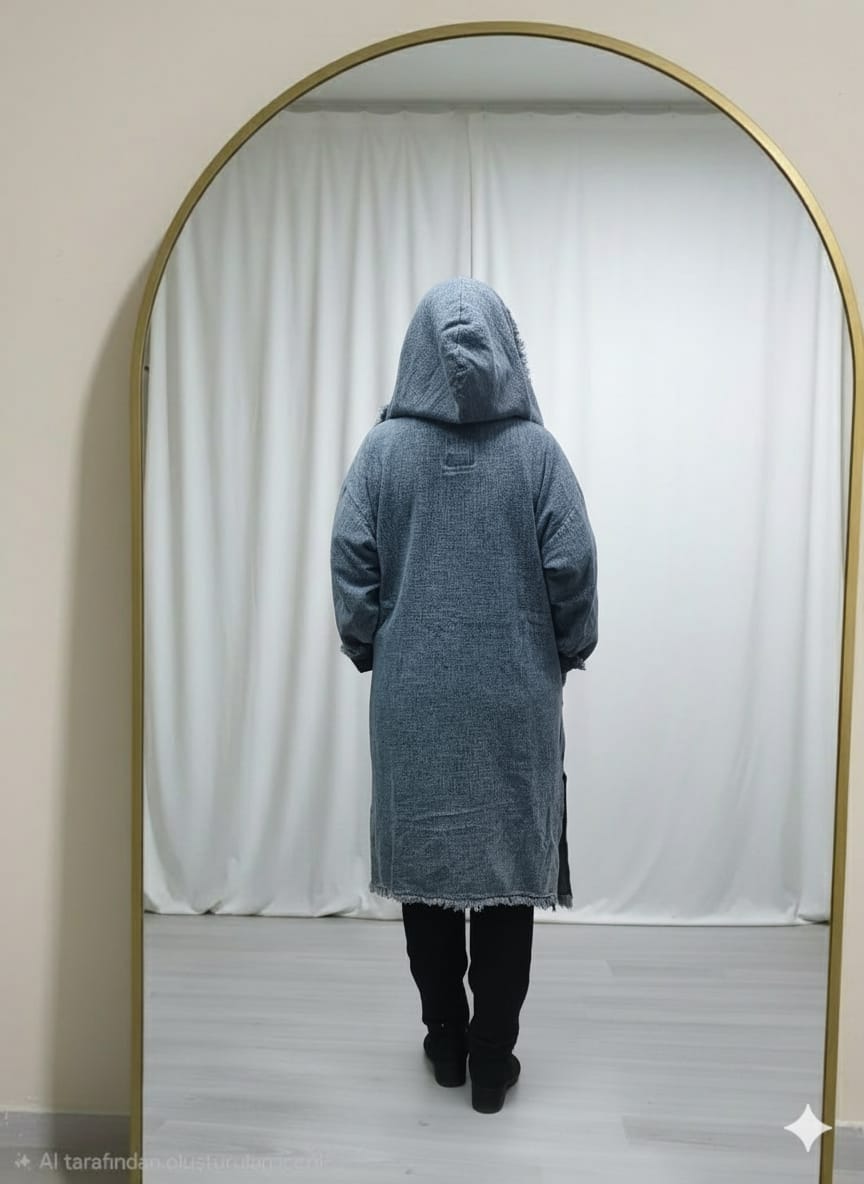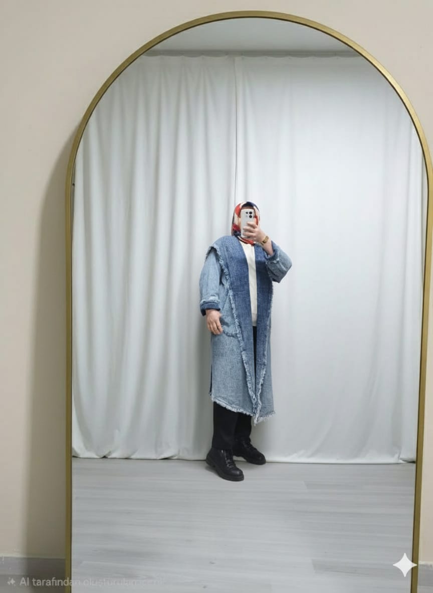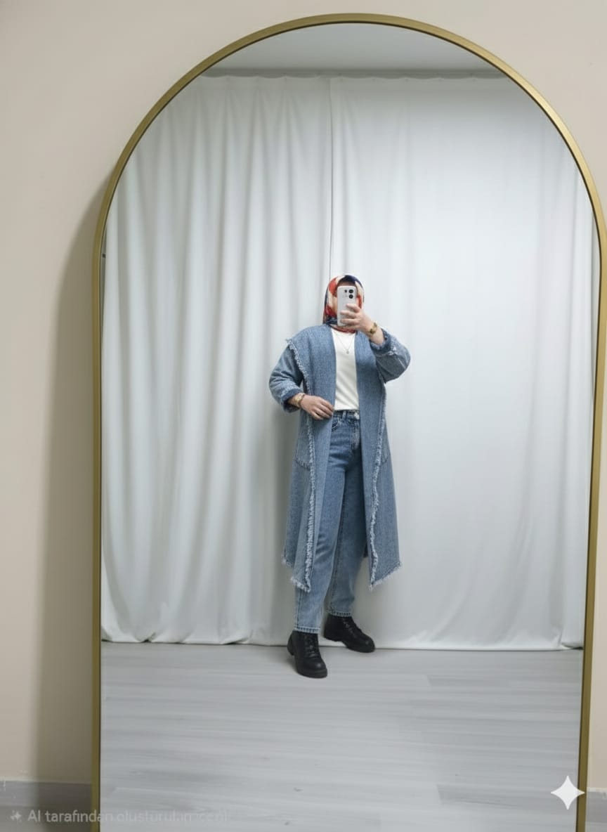 kadınlar için özel tasarım olan kot kumaşlı uzun ve rahat mevsimlik hırka (oversize geniş kalıp)