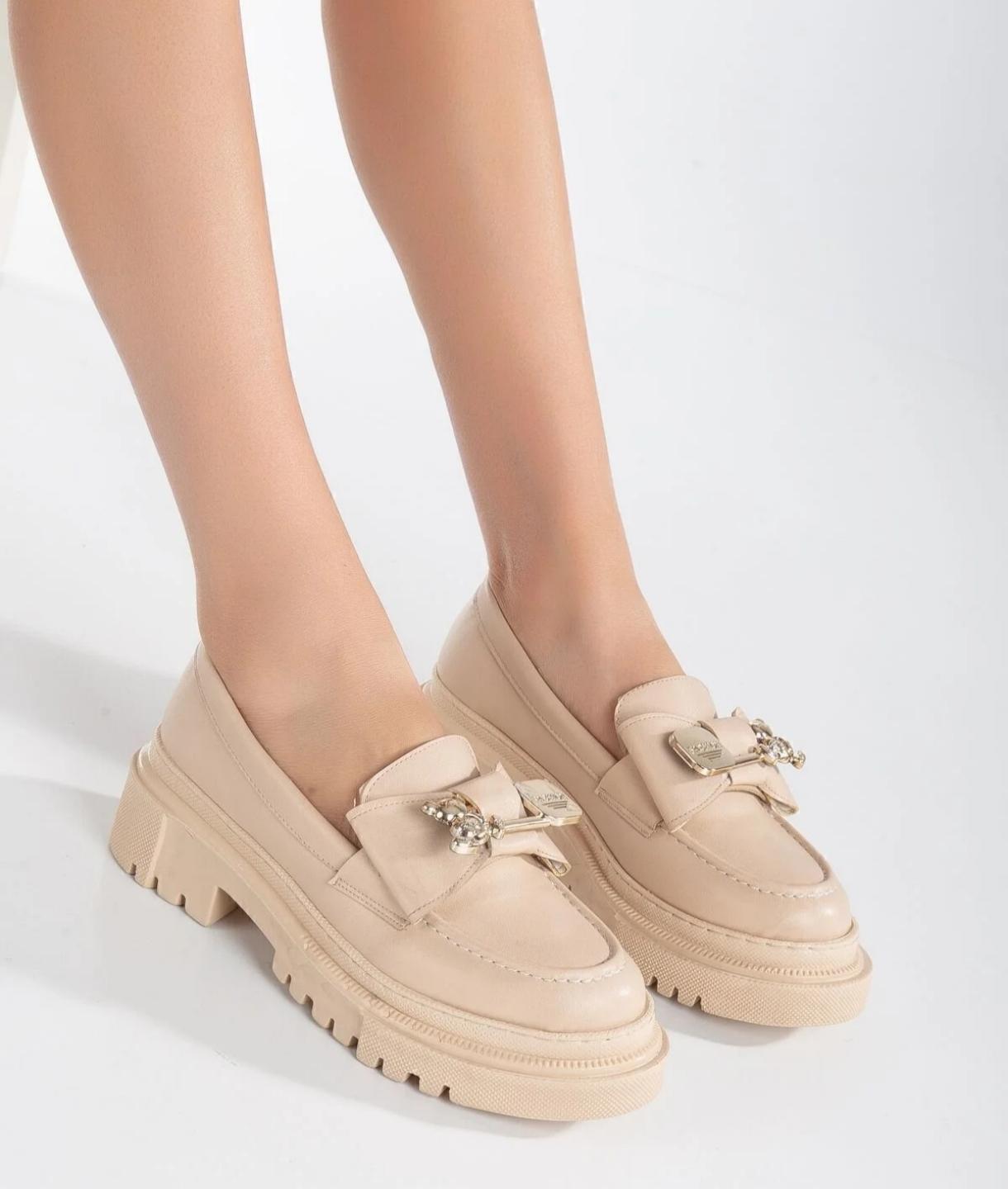 Her kıyafetle kombinleyeceginiz şıklığın ötesi leofer kalın taban babet sizlerle buluşturduk.