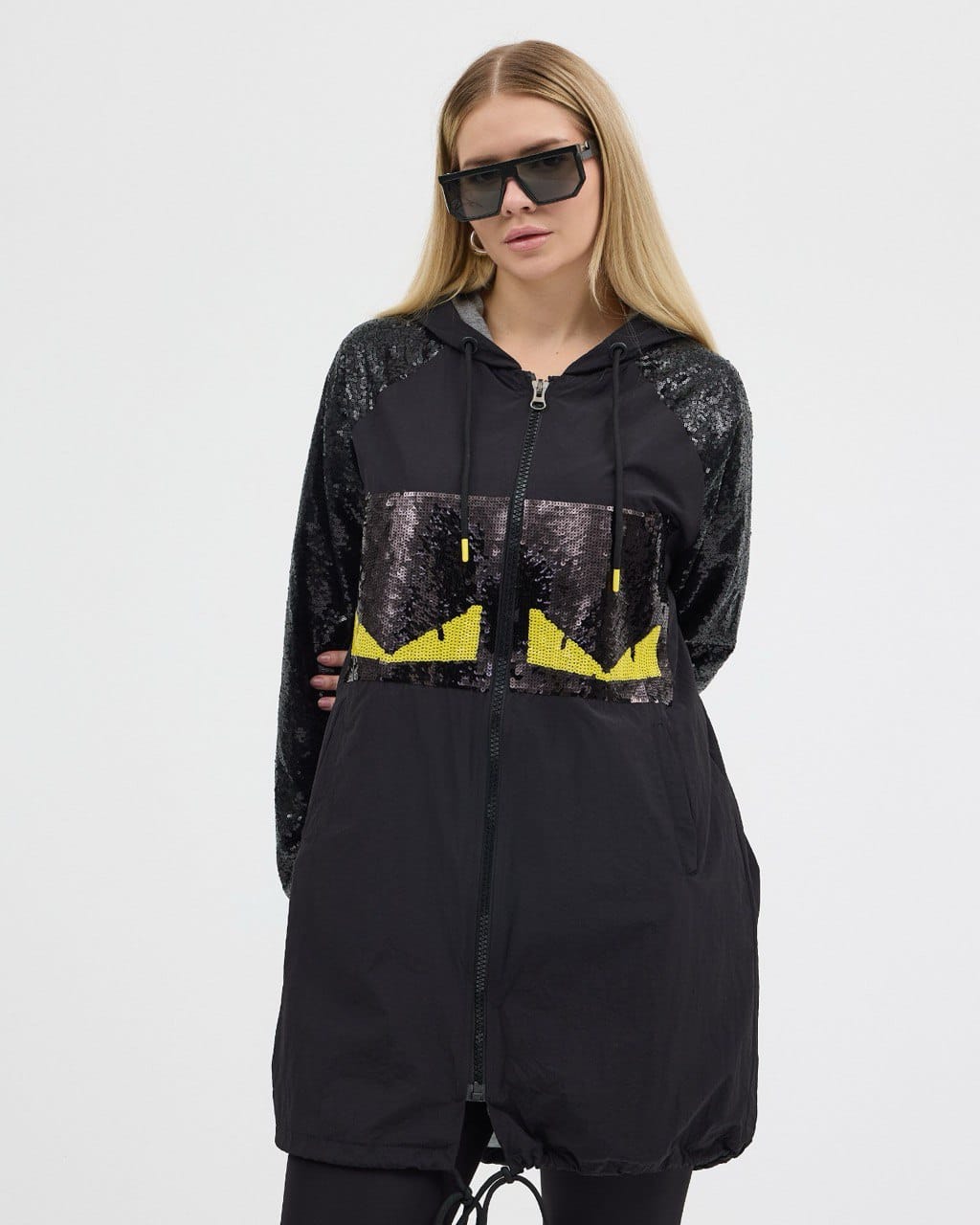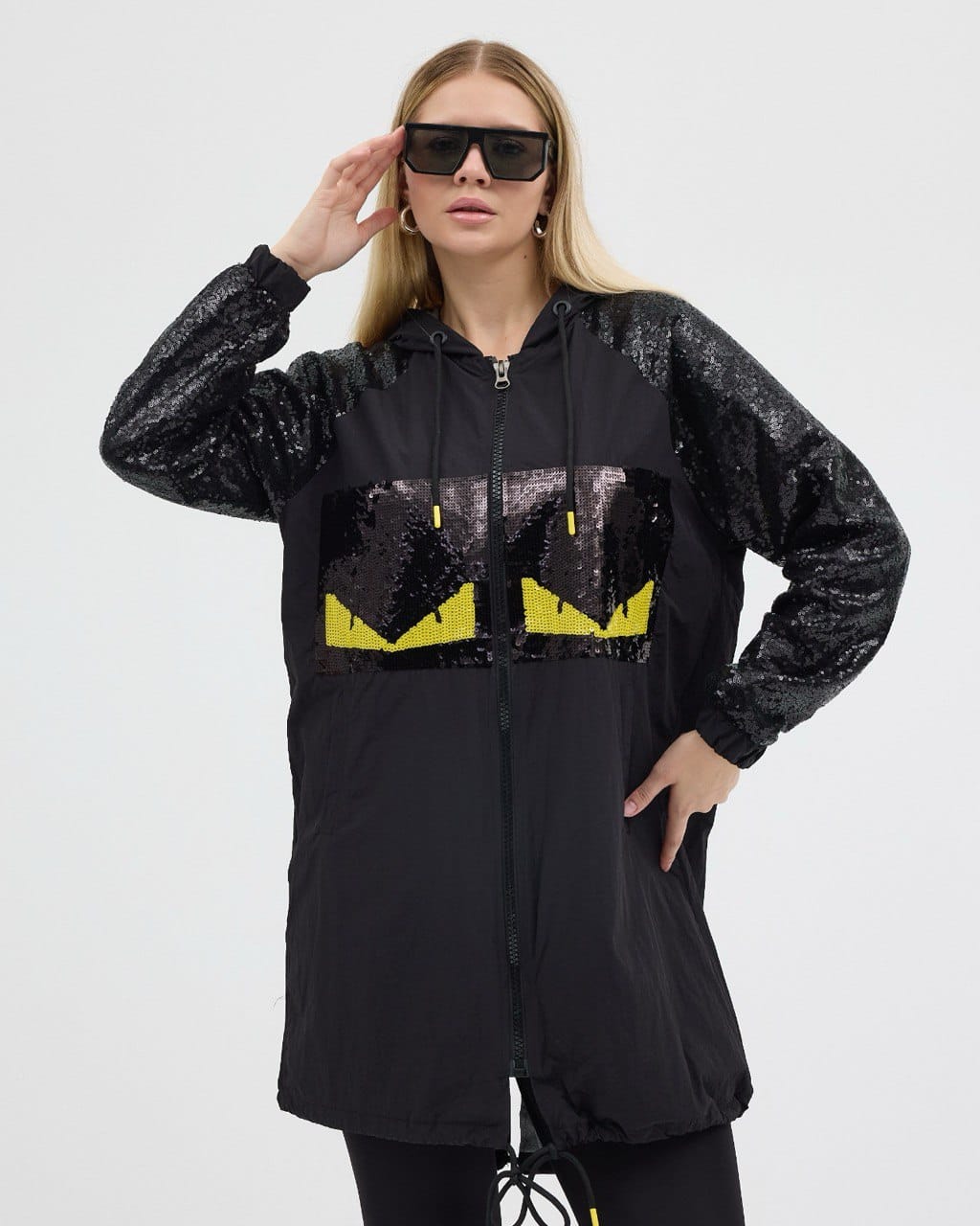 Siyah Pul Detaylı Kapşonlu Trenç Kot